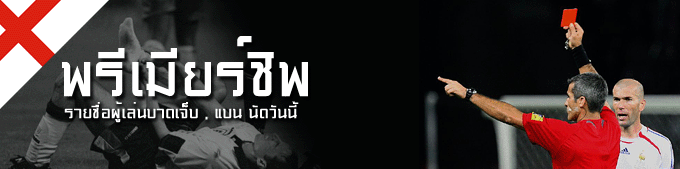 *** คือ นักเตะที่สำคัญมาก ** คือ นักเตะตัวจริง * คือ นักเตะทีมใหญ่แต่ไม่ใช่ตัวหลัก suspension - นักเตะที่โดนแบน --------------------------------------------------------- ENG Premier League, Injuries, August 14 - 14.08.2007 |