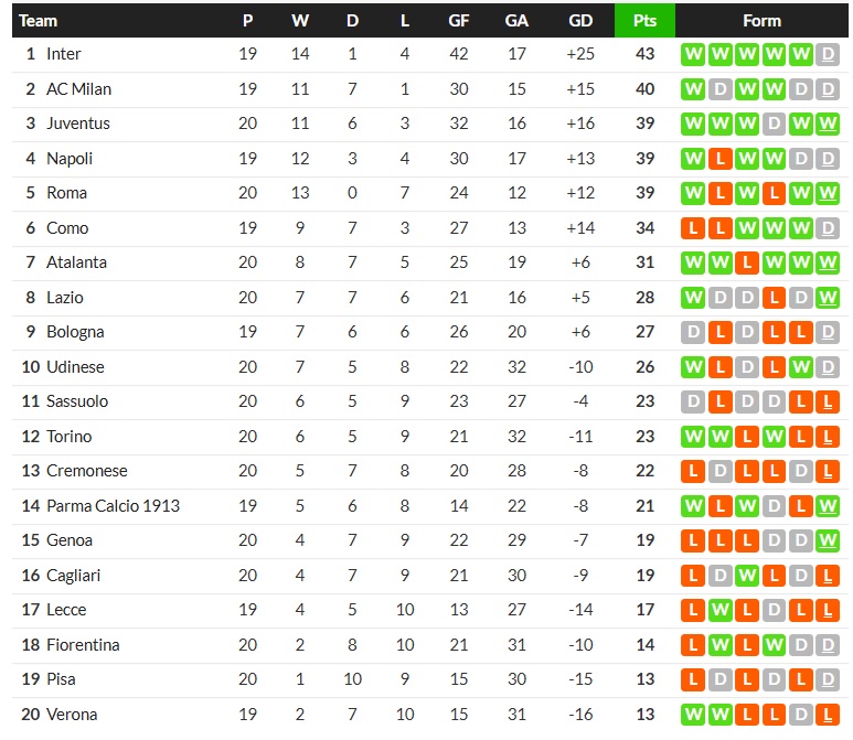 13/12/25 ชนะ ปิซ่า 1-0 (เหย้า) เซเรีย อา / ต่อ ปป ... ได้
