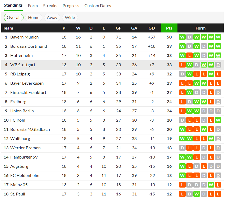 ฟอร์มการเล่นคนล่ะเรื่องกับคู่แข่งเลยทีเดียวเพราะไร้พ่ายมา 4 เกมติดต่อกันแถมชัยชนะหนล่าสุดทำให้ลูกทีมของ คริสเตียน อิลเซอร์ ทะยานขึ้นมาอยู่อันดับที่ 3 ของลีกเป็นที่เรียบร้อยแล้ว ด้านความพร้อมไม่มีแข้งหลักบาดเจ็บหรือติดโทษแบนให้กวนใจเช่นเคยและนัดนี้จะเลือกใช้งานผู้เล่นชุดที่ดีที่สุดอีกครั้ง หลักๆก็คือการส่งสองห้องเครื่องตัวเก่งอย่าง อังเดร ครามาริช (17 นัด/6 ประตู) และ ทิม เลมเพอร์เล่ (16 นัด/6 ประตู) รับหน้าที่ปั้นเกมรุกร่วมกันและสอดแทรกขึ้นมาพังประตูโดยมี ฟิสนิค อัสลานี่ (17 นัด/6 ประตู) ยืนค้ำเดี่ยวเป็นหน้าเป้าพร้อมล่าตาข่ายเหมือนกัน