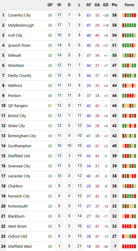 31/01/26 แพ้ เร็กซ์แฮม 0-1 (เหย้า) แชมเปี้ยนชิพ / รอง 1 ... เจ๊า