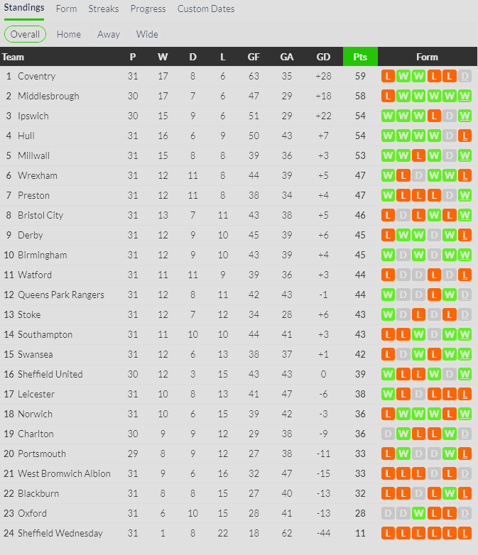 31/01/26 แพ้ พอร์ทสมัธ 0-3 (เยือน) แชมเปี้ยนชิพ / เสมอ ... เสีย
