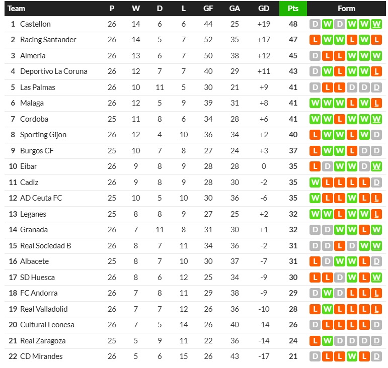 17/01/26 แพ้ เรอัล บายาโดลิด 0-3 (เหย้า) เซกุนด้า / เสมอ...เสีย
