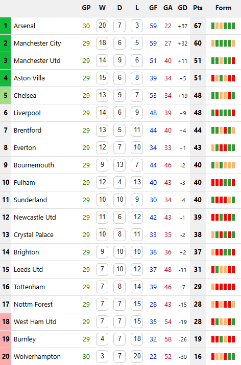 02/03/26 แพ้ อาร์เซน่อล 1-2 (เยือน) พรีเมียร์ลีก / รอง 1 ... เจ๊า