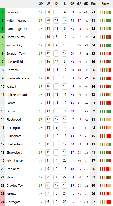 27/04/19 โคลเชสเตอร์ ชนะ เอ็มเค ดอนส์ 2-0