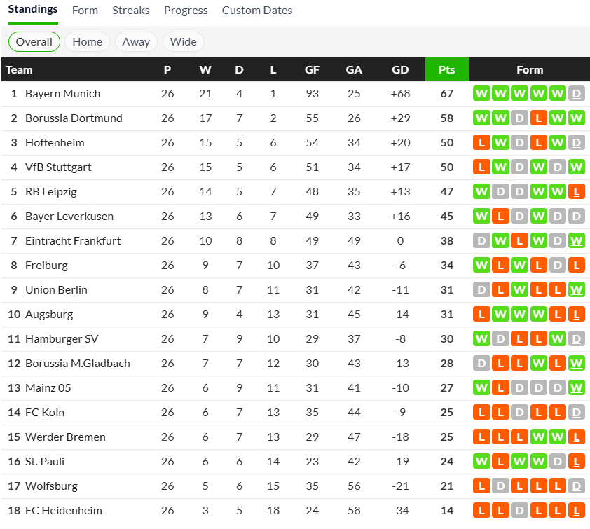 16/03/26 แพ้ สตุ๊ตการ์ต 0-1 (เยือน) บุนเดสลีก้า / เสมอ ... เสีย
