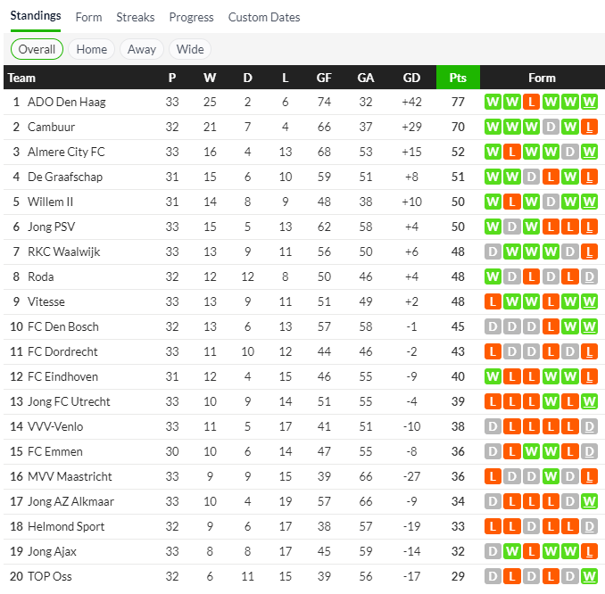14/03/26 แพ้ เดน ฮาก 0-1 (เหย้า) จูปิแลร์ ลีก / รอง 1 ... เจ๊า
