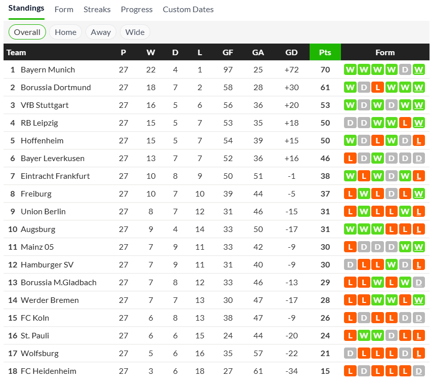 07/03/26 แพ้ บาเยิร์น 1-4 (เยือน) บุนเดสลีก้า / รอง 2 ... เสีย