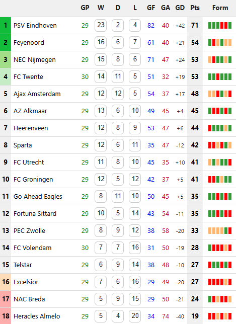 22/03/26 แพ้ โกรนิงเก้น 0-3 (เยือน) พรีเมียร์ดัตช์ / เสมอ ... เสีย