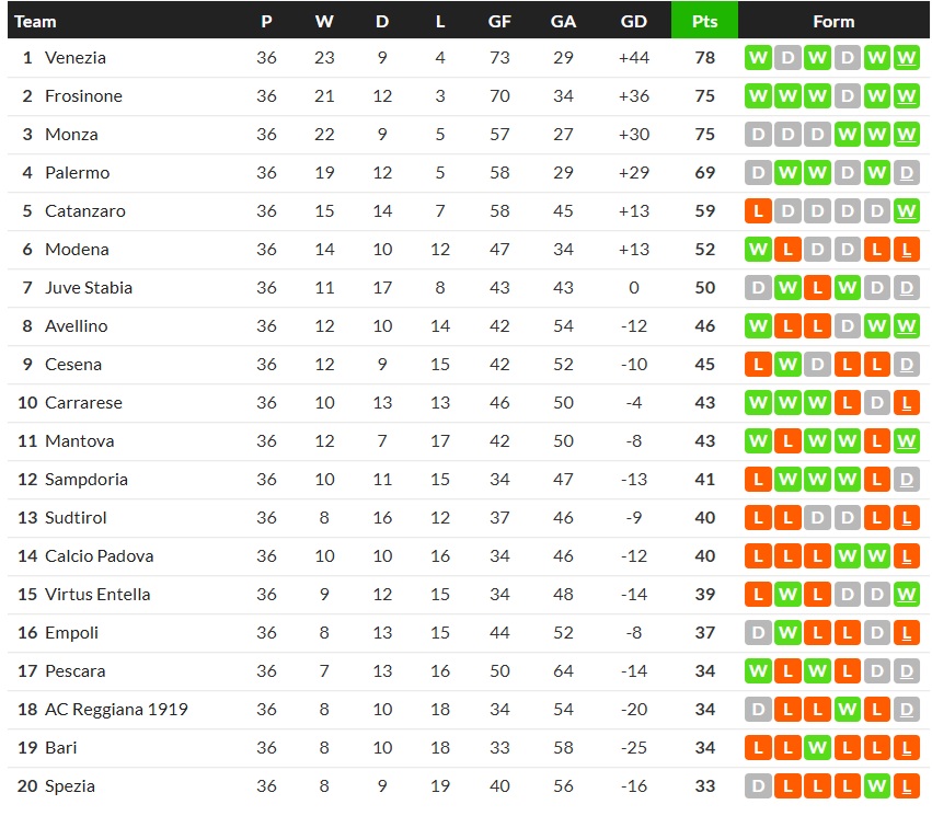 25/04/26 ชนะ ปาโดวา 1-0 (เหย้า) เซเรีย บี / ต่อ 0.75 ...ได้ครึ่ง